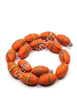 El Yapımı Renkli Çizgili Mat Dizi Cam Boncuk Turuncu 10x16 mm