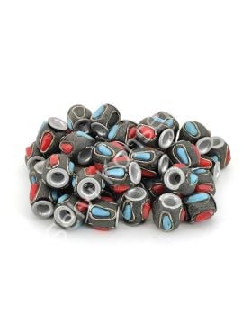 Siyah-Beyaz-Renkli Çizgili Cam Boncuk