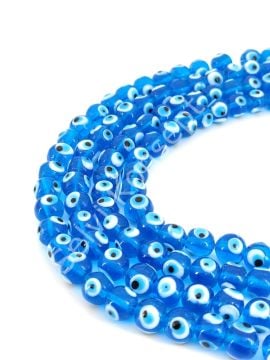 Yuvarlak Dizi Cam Nazar Boncuğu Saks Mavi 11 mm